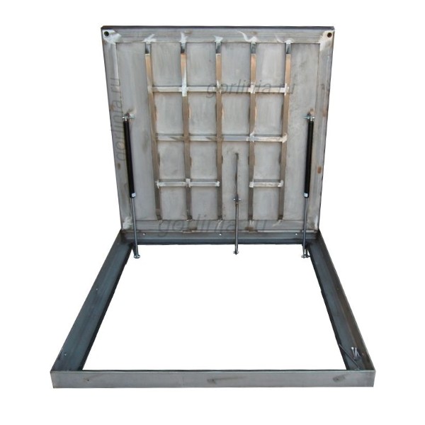 Коробка сварена из стали AISI 304 с толщиной стенки 5/6 мм; в дне корыта лист 5/8 мм (параметр зависит от грузоподъемности), снизу армирован профильной трубой 50х25. Тип сварки: аргонно-дуговая сплошным швом с присадками для нержавейки. Механизм комплектуется усиленными газлифтами 2000N.