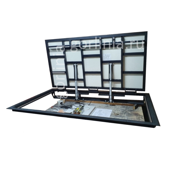 Дверь открывается руками без электричества. Для этого вкрутите ручки, распахните створку в положение открыто. В случае если Вы открыли люк вручную и поставили на стопор актуаторы, закройте его также, а потом начинайте пользоваться пультом.