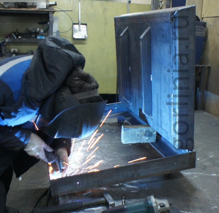 Крышка выпускается из прессованного Г-образного профиля со стальным дном из листа 3 мм, армировка снизу профильной трубой. Сварка аргонно-дуговая сплошным проваром швов с присадками меди. Шарнир: труба 20х20 с пальцем из прутка. После операций грунта и окраски металлокаркас проходит термообработку в высокотемпературной печи.Грузоподъемность люка под брусчатку
