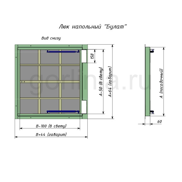 Облегченная рама из листового проката 3 мм с наличником, жесткий каркас полотна в обвязке трубой 30х20 заполнен гипсоволокнистым влагостойким листом над утеплителем под чистовую отделку плиткой.