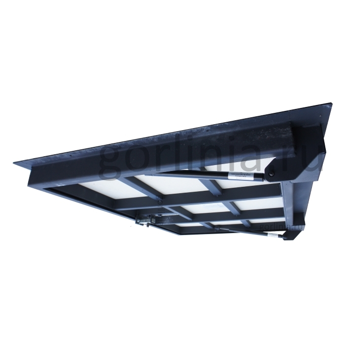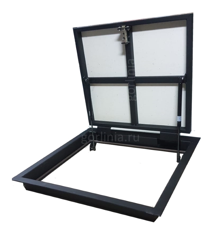 Заказное изделие прямоугольной формы с шарнирным соединением по большей стороне и узким световым лазом 550*400 при открытой двери.