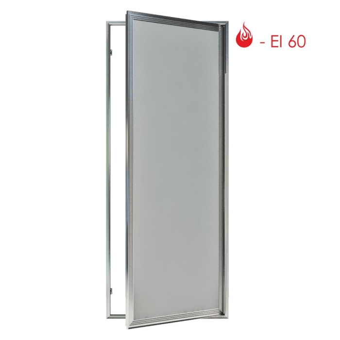 В скрытую коробку с порогом без наличника вклеена терморасширяющаяся лента, полотно на осевой подшипниковой петле заполнено минеральной плитой, закрытой листами ГВЛ и ГСП-DF.